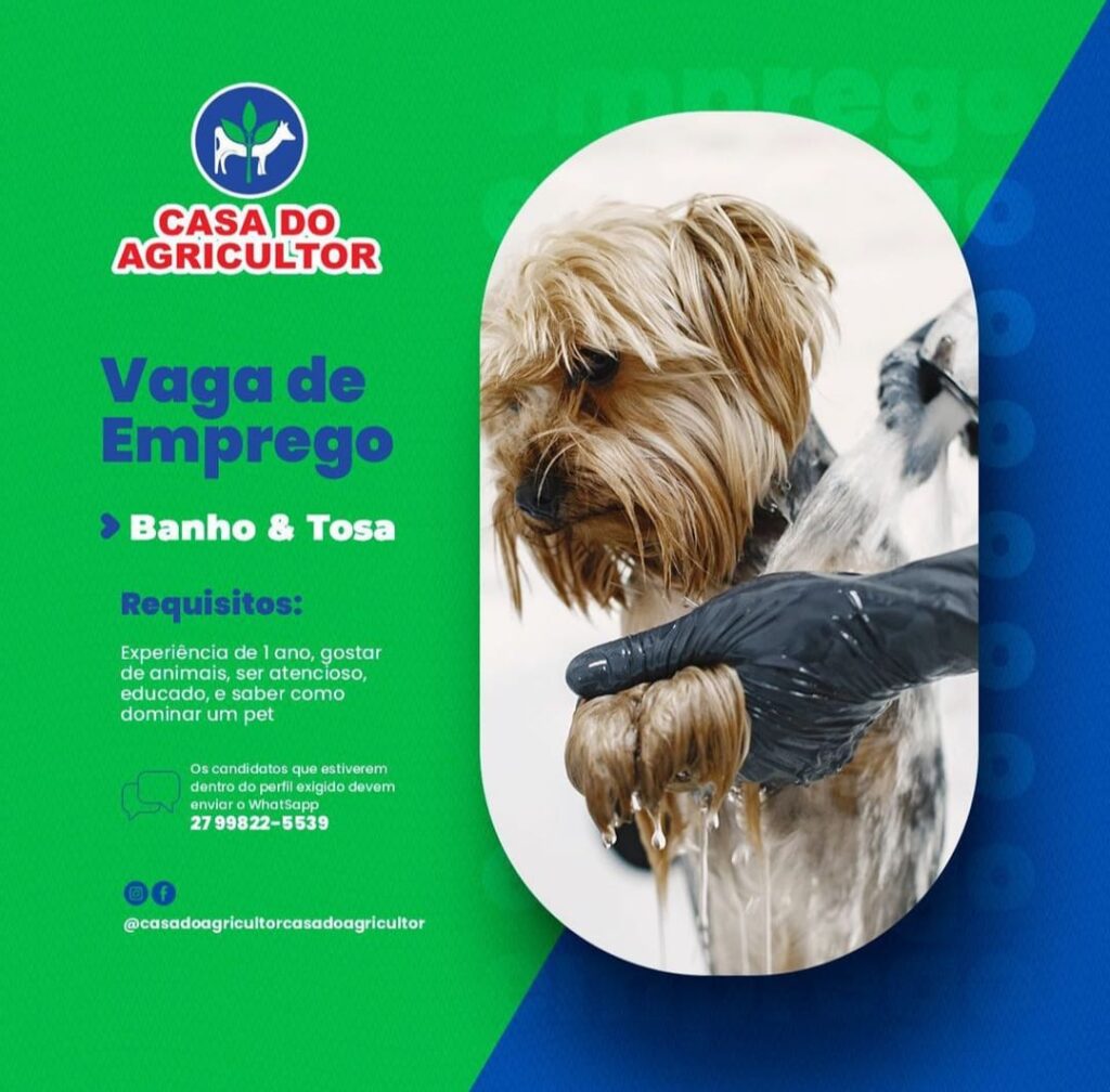 A Casa do Agricultor está com vagas abertas para banhista e tosador.