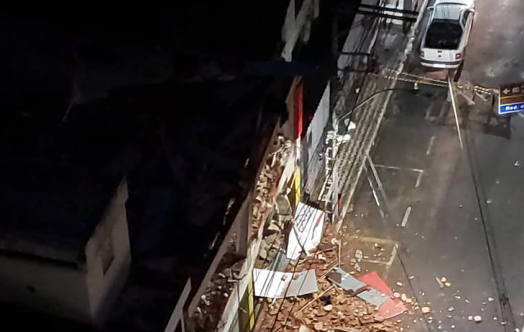 A população ficou assustada quando parte da fachada veia abaixo, veja o vídeo.