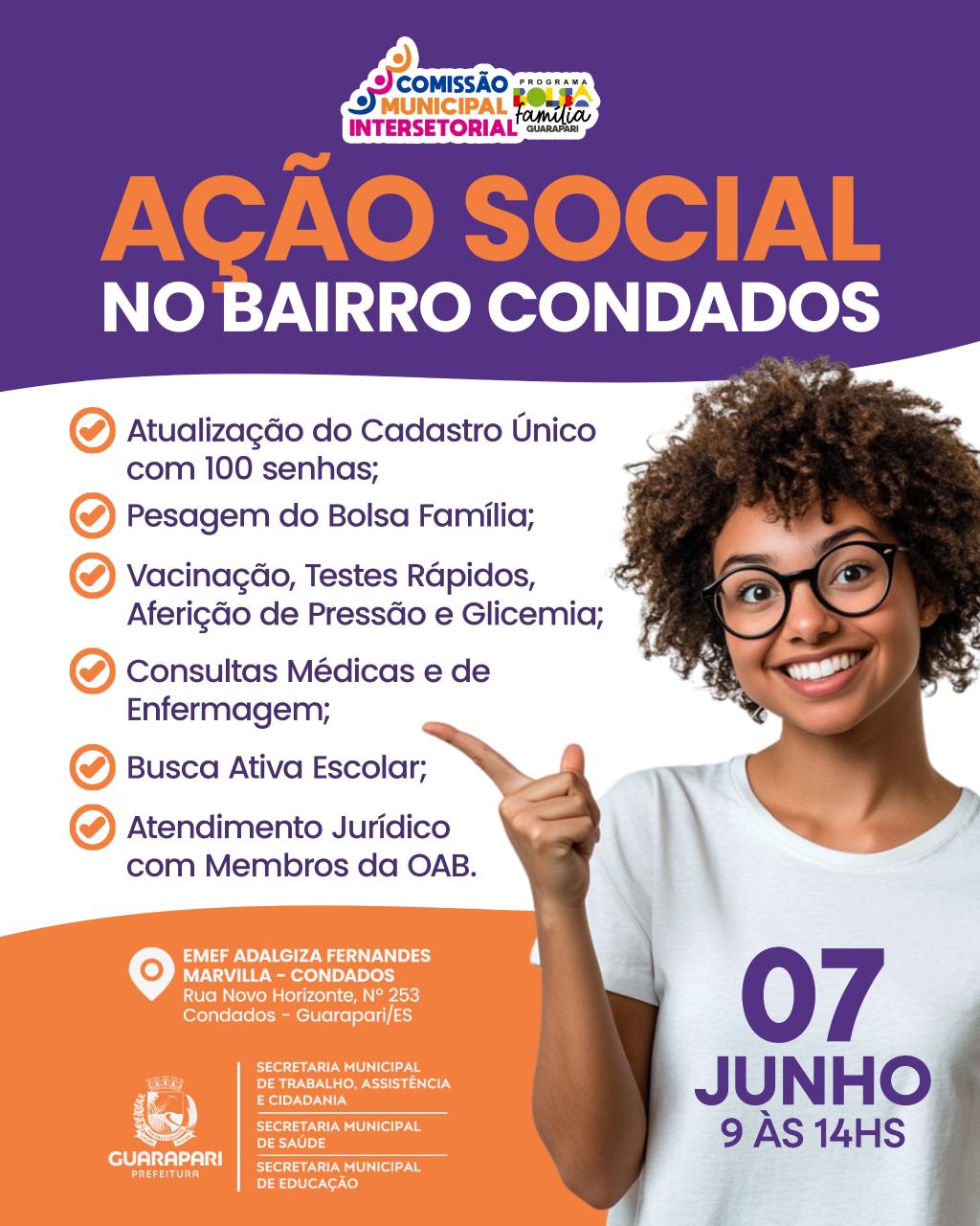 Guarapari #AçãoSocial #PrefeituraDeGuarapari #Condados #ServiçosGratuitos #AssistênciaSocial #Saúde #Educação #OAB #CadastroÚnico #BolsaFamília