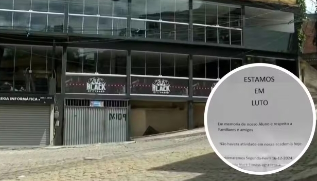 Na academia, na manhã deste sábado (14), um cartaz estava fixado na parede e falava sobre o ocorrido: “Estamos em luto. Em memória de nosso aluno e respeito a familiares e amigos, não haverá atividade em nossa academia hoje. Retornaremos segunda-feira (16)”.