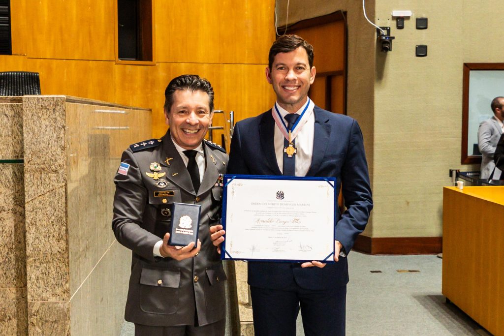 A homenagem foi entregue pelo deputado Capitão Assumção, autor da indicação. A cerimônia foi conduzida pela Mesa Diretora da Ales, sob a presidência do deputado Delegado Danilo Bahiense, 2º vice-presidente da Casa.