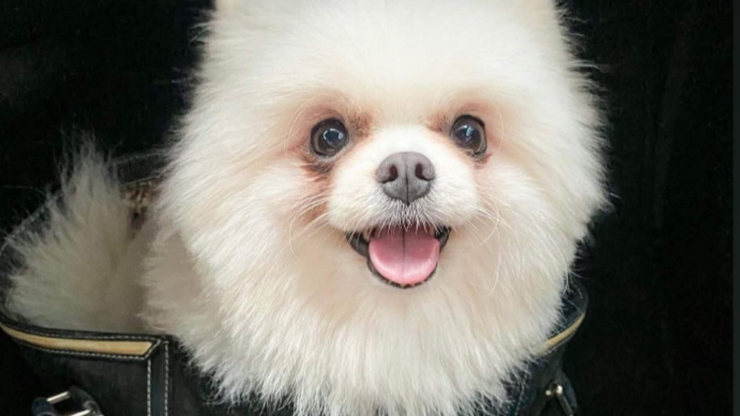 Características: spitz alemão de pelagem branca, fêmea