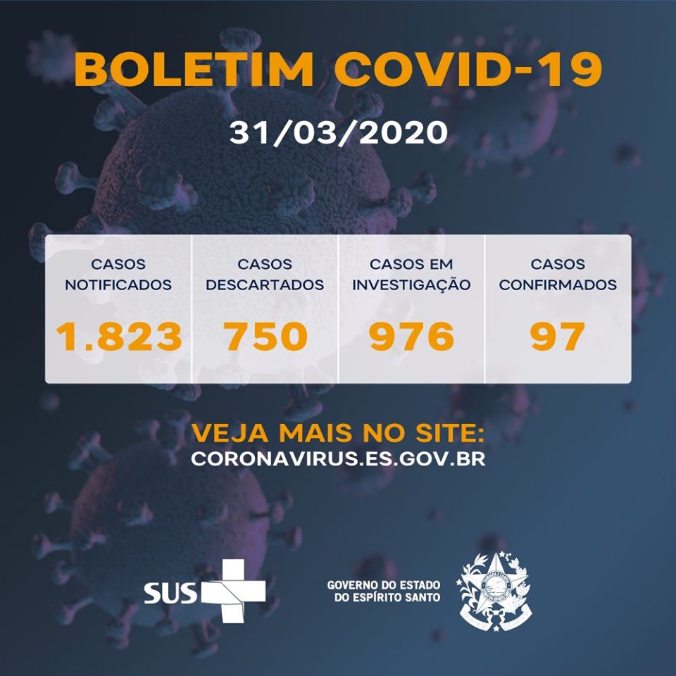 O Espírito Santo tem 97 casos confirmados do novo Coronavírus (Covid-19) até esta terça-feira (31) e já registra casos de transmissão comunitária da doença.
