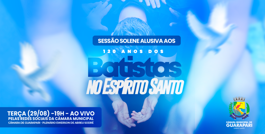 A Câmara Municipal de Guarapari realizará, na próxima terça-feira (29/08), uma sessão solene em celebração aos 120 anos dos Batistas no Espírito Santo. Este evento especial, dedicado a homenagear e reconhecer o importante papel dos religiosos na comunidade, será um momento de reconhecimento e gratidão pelos seus serviços.