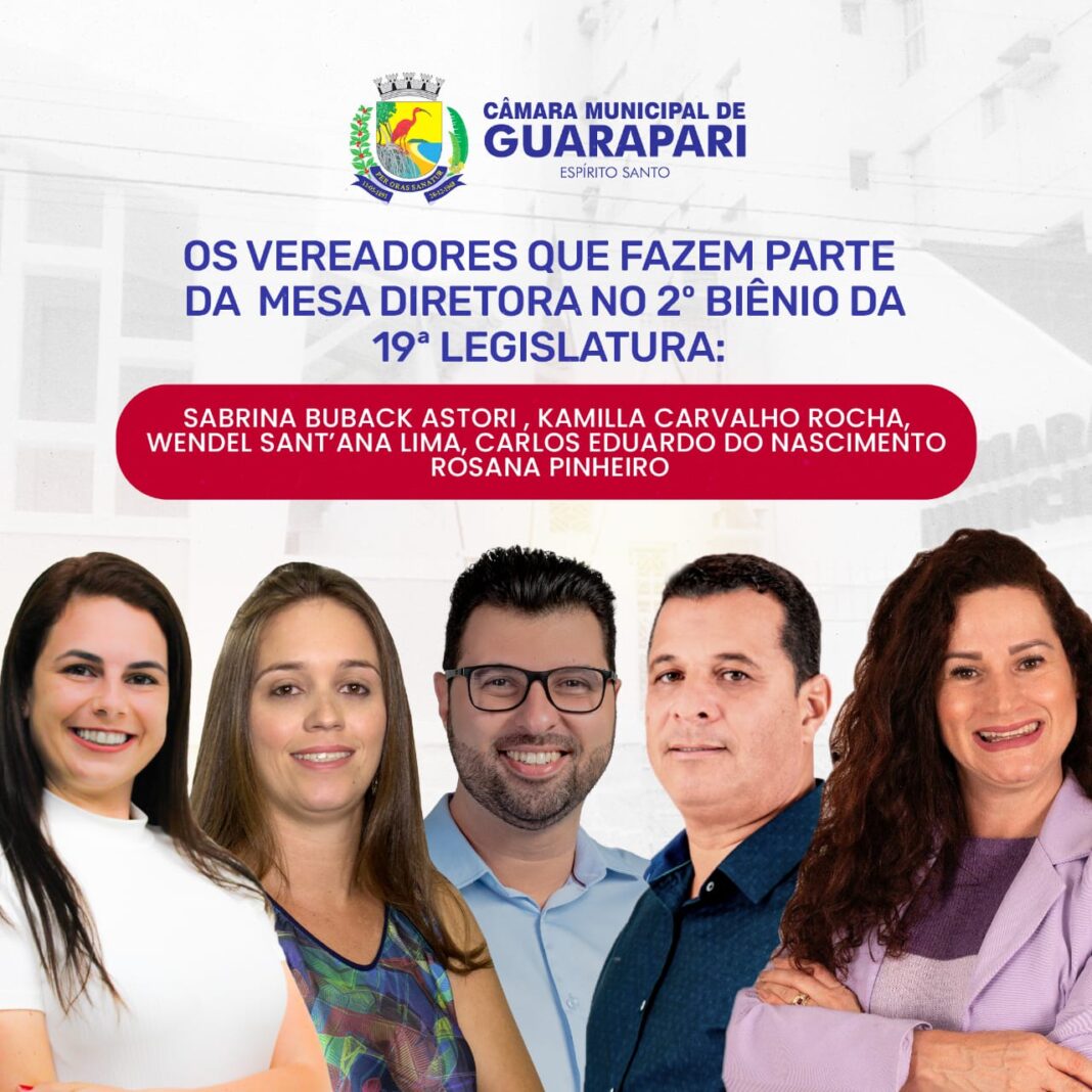 A Câmara Municipal de Guarapari realizou hoje, durante a 1ª sessão solene de 2023, a cerimônia de posse da nova Mesa Diretora e das Comissões Permanentes para o biênio de 2023/24. A solenidade contou com a presença dos vereadores e foi transmitida ao vivo para acompanhamento do público em geral, com a gravação estando salva no canal do YouTube do órgão. A chapa vencedora foi a “Juntos, seguindo em frente”.