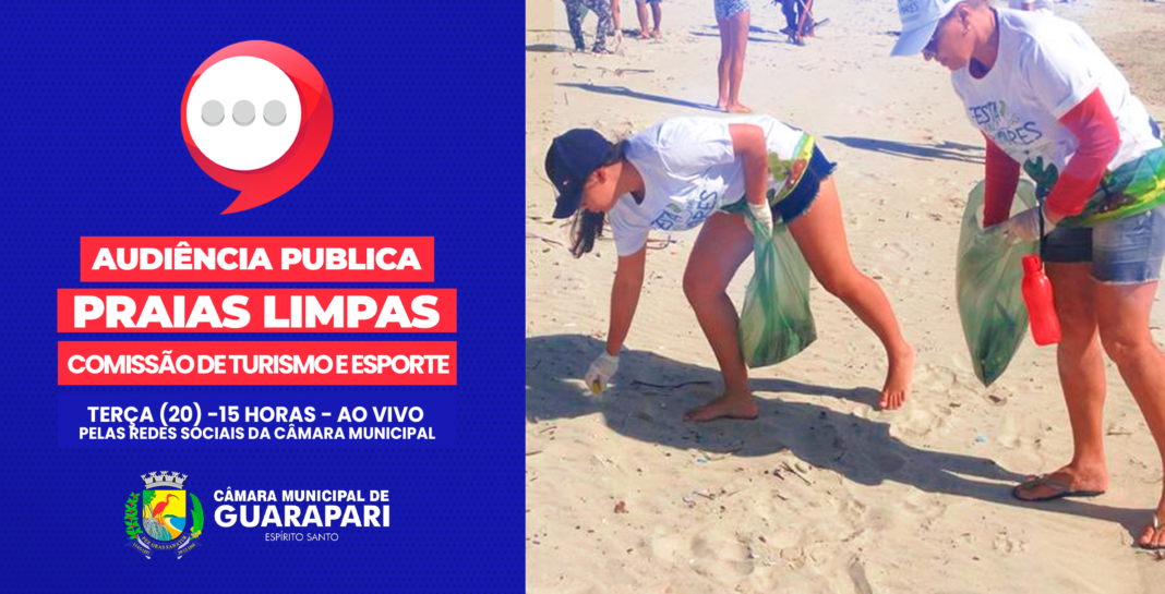 A Câmara Municipal de Guarapari sediará uma importante reunião pública com o tema “Praias Limpas”. O evento, que ocorrerá no dia 20/06 (terça-feira), às 15 horas, no Plenário Ewerson de Abreu Sodré, tem como objetivo promover o engajamento da comunidade na conservação e preservação do litoral guarapariense.