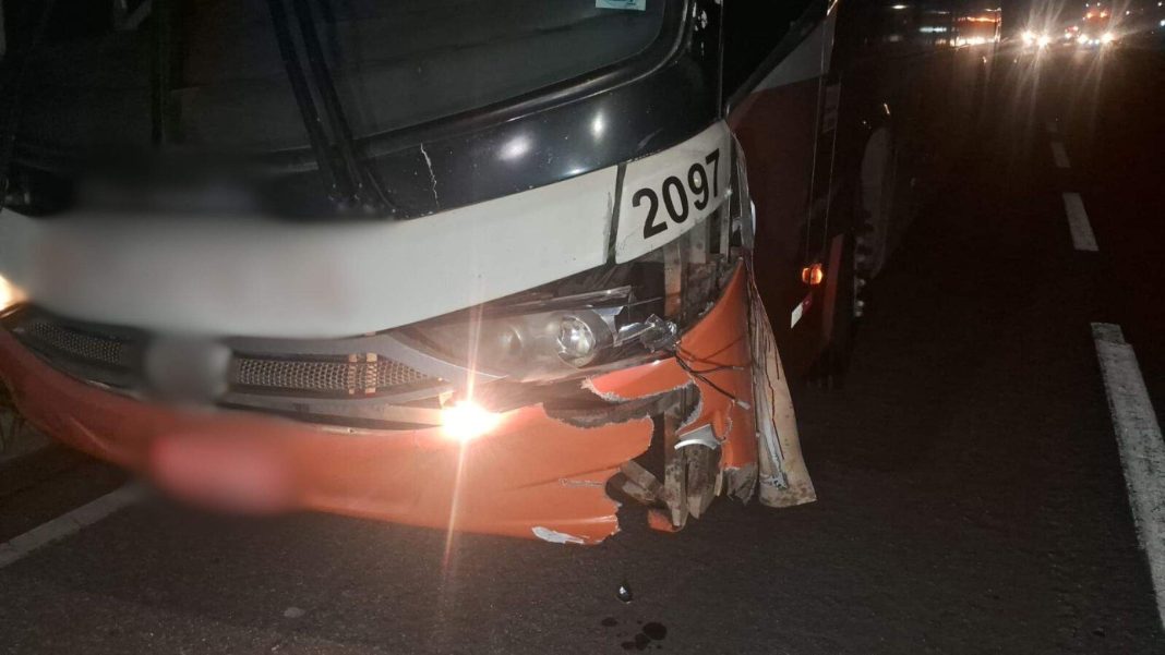 O motorista fez o teste do bafômetro, e o resultado deu negativo para álcool. Com o impacto, a lateral dianteira direita do ônibus ficou destruída.