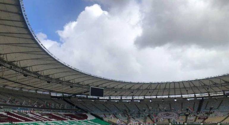 O Maracanã já está pronto para a estreia do Fluminense na Libertadores, nesta quinta-feira, diante do River Plate (ARG), às 19h. Nesta terça-feira, um grupo de torcedores foi ao estádio para produzir um mosaico no Setor Leste com os dizeres “Time de Guerreiros”. Além disso, as já tradicionais bandeiras e faixas permanecem no Setor Sul do estádio.