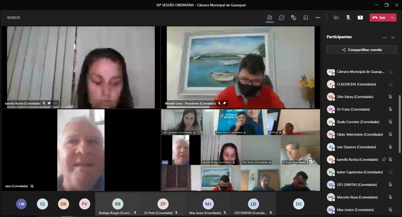 No final da sessão ordinária virtual desta quinta-feira (20/05), diversos parlamentares fizeram uso da palavra, durante o horário destinado aos oradores. Foram eles: Dudu Corretor (Cidadania), Rodrigo Borges (Republicanos), Denizart Zazá (Podemos), Zé Preto (Patriota), Dito Xaréu (PSDB), Sabrina Astori (DC), Dr. Franz (PP) e Rosana Pinheiro (Cidadania). E no horário reservado aos líderes de bancadas, discursaram os seguintes vereadores: Marcelo Rosa (PL), Denizart Zazá (Podemos), Zé Preto (Patriota) e Dito Xaréu (PSDB).