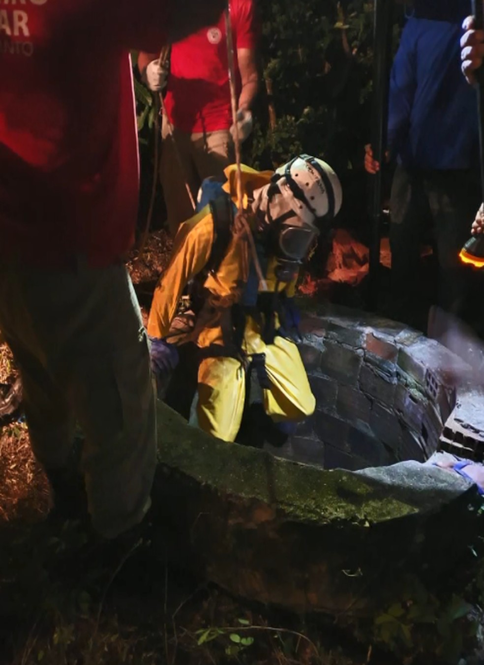 De acordo com o Corpo de Bombeiros, uma equipe foi enviada até a região após um comerciante informar que havia um forte odor saindo do poço, despertando a suspeita de que pudesse haver um cadáver no local.