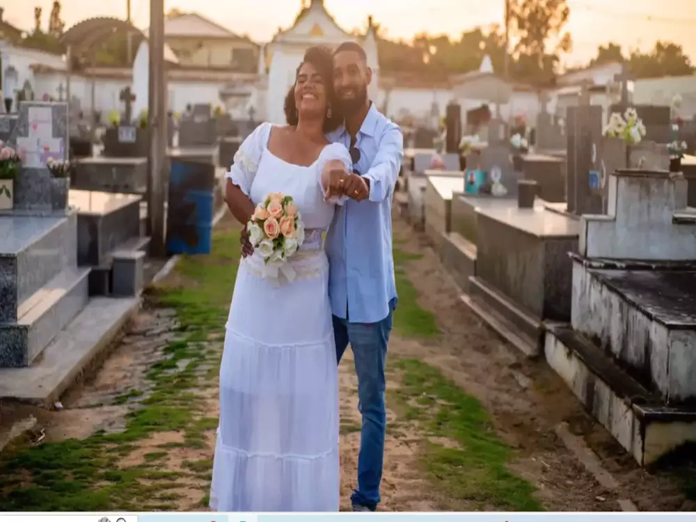 Fabiana do Nascimento, 40, e Adriano da Rocha, 28, se conheceram entre um velório e outro, realizado em um cemitério de São Mateus, no Norte do Espírito Santo. O local foi escolhido para ser o cenário das fotos de casamento do casal.