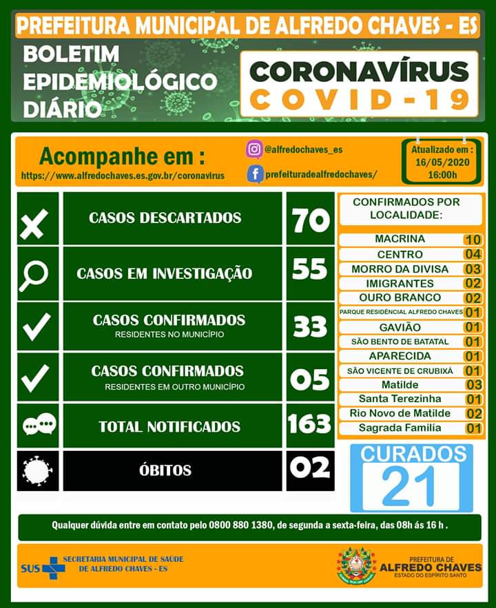Início Alfredo Chaves COVID-19 17/05/2020 ... Alfredo ChavesDestaquesSaúde COVID-19 17/05/2020 ALFREDO CHAVES – ES Por Redação Colina Notícias - 17/05/2020 73 0 Compartilhado FacebookTwitterWhatsAppLinkedinTelegram BOLETIM EPIDEMIOLÓGICO DE ALFREDO CHAVES – ES WWW.COLINANOTICIAS.COM.BR ARTIGOS RELACIONADOSMais do autor Beto Kauê será uma das atrações do Réveillon Guarapari 2026 Prefeitura abre inscrições para a campanha de castração de cães e gatos São Paulo ‘freia’ embalo do Vasco com Diniz, dá fim a jejum em São Januário e vence confronto direto por Libertadores