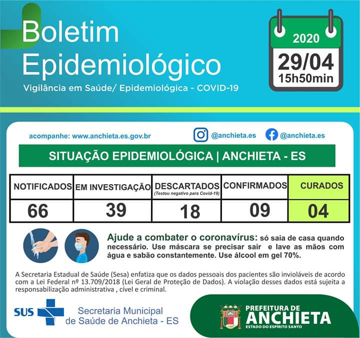 Início Anchieta COVID-19 28/04/2020 AnchietaDestaquesSaúde COVID-19 28/04/2020 Por Redação Colina Notícias - 29/04/2020 56 0 Compartilhado FacebookTwitterWhatsAppLinkedinTelegram BOLETIM EPIDEMIOLÓGICO DE ANCHIETA – ES WW.COLINANOTICIAS.COM.BR ARTIGOS RELACIONADOSMais do autor Morre idosa que teve rosto desfigurado após crime em Guarapari Ofertas de Primavera Grande Rio Lixo na Praia do Morro em Guarapari mancha um final de tarde que poderia ser só beleza