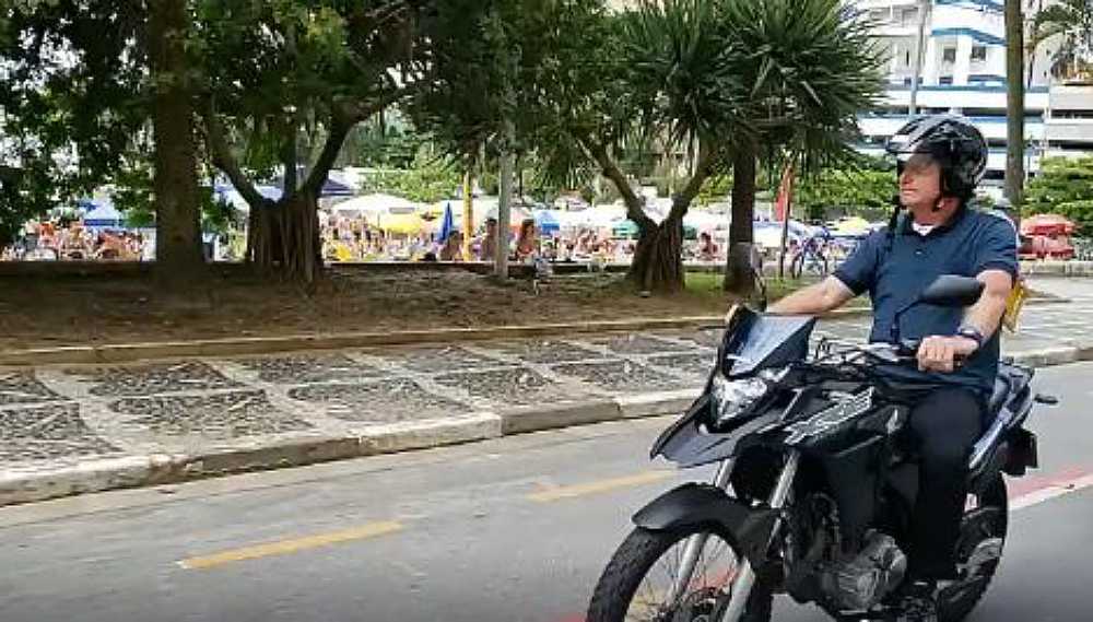 Em seu terceiro dia de folga neste feriado de carnaval, o presidente Jair Bolsonaro aproveitou a segunda-feira, 24, de sol para andar de moto pelas praias do Guarujá.