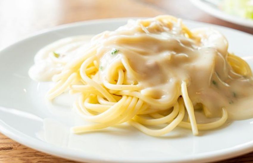 - Em um refratário coloque o macarrão, despeje o molho e polvilhe o queijo ralado.