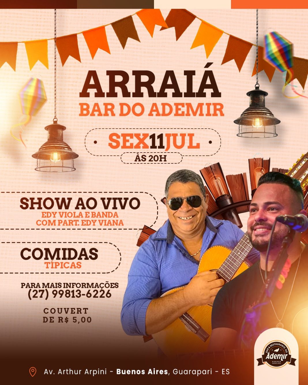 Julho chegou e, com ele, o clima de festa junina toma conta da cidade! Nesta sexta-feira, dia 11 de julho, o tradicional Bar do Ademir, localizado no bairro Buenos Aires, promove o seu já conhecido Arraiá, prometendo uma noite recheada de animação, cultura e sabores típicos da roça.