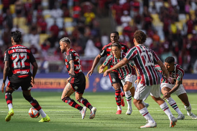 O primeiro tempo foi abaixo do esperado dos dois times. O Flamengo até ficou mais com a bola do que o Fluminense, mas as duas equipes pouco fizeram no Maraca, em jogo que ficou marcado por discussões entre os jogadores. Por conta de uma confusão, Arias e Pulgar receberam amarelo.