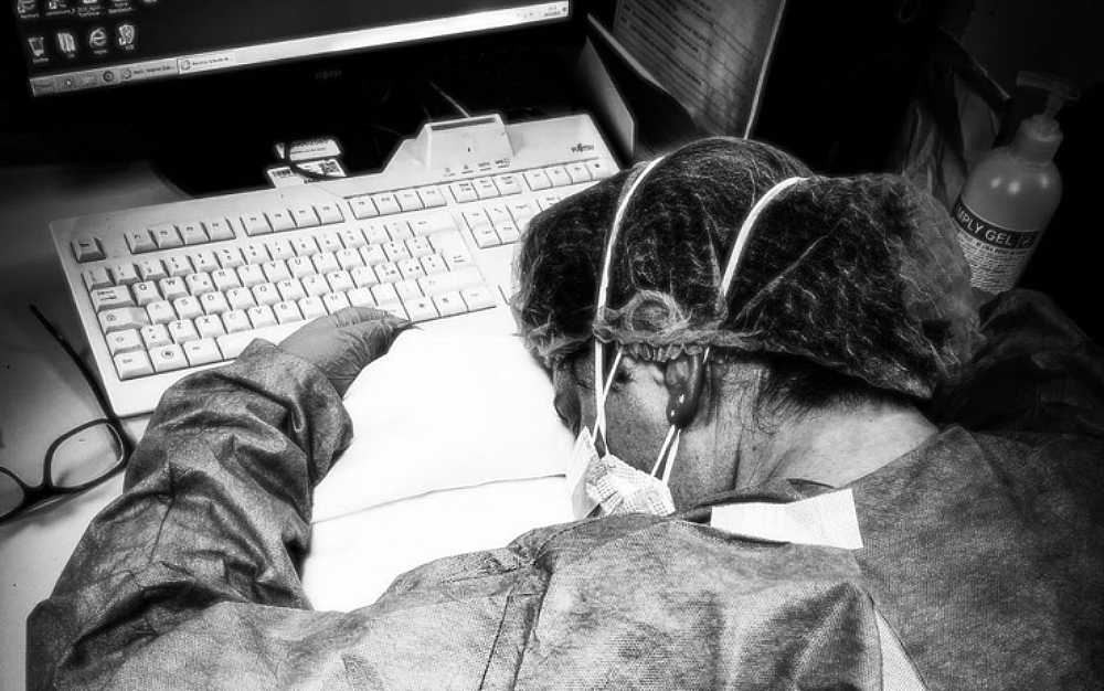 Vai entrar na história como uma das imagens mais simbólicas da batalha na Itália contra o coronavírus. Trata-se da foto de uma enfermeira exausta que adormece, usando uma máscara, luvas e uniforme diante de um computador depois de uma noite atendendo os pacientes.