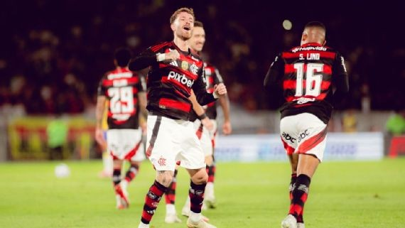 Três minutos depois, veio a resposta em grande estilo. Arrascaeta entregou na esquerda para Samuel Lino, que cruzou na medida para Léo Pereira, livre, cabecear no cantinho e abrir o placar.