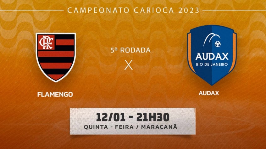 Em partida adiantada da quinta rodada da Taça Guanabara, Flamengo e Audax abrem o Campeonato Carioca de 2023 nesta quinta-feira. A bola vai rolar no Maracanã, a partir das 21h30, na quinta-feira. O jogo terá transmissão em Tempo Real do LANCE! e com imagens da Band.