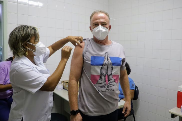 O governador Renato Casagrande, 60 anos, recebeu a primeira dose da vacina contra a Covid-19 na manhã desta terça-feira (20), na Unidade de Saúde de Santo Antônio, em Vitória.