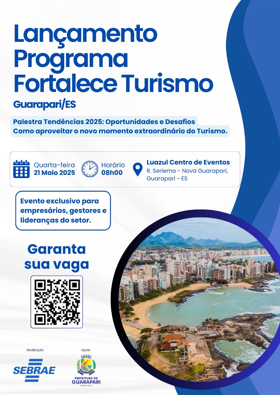 A Prefeitura de Guarapari, por meio da Secretaria Municipal de Turismo, confirmou a adesão ao Programa Fortalece Turismo, iniciativa conduzida pelo Sebrae-ES, com metodologia da Lab Turismo. A participação foi prontamente aceita pelo prefeito Rodrigo Borges, que destacou a importância da qualificação e da gestão colaborativa para o desenvolvimento do setor turístico no município.