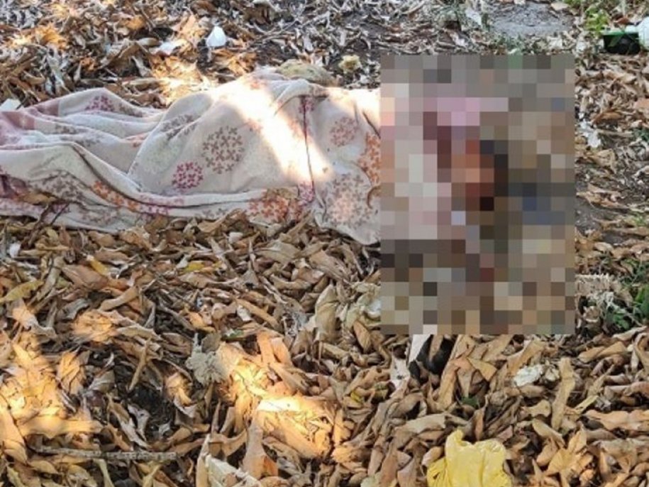 O corpo estava encoberto com um lençol e foi encontrado por moradores da área.