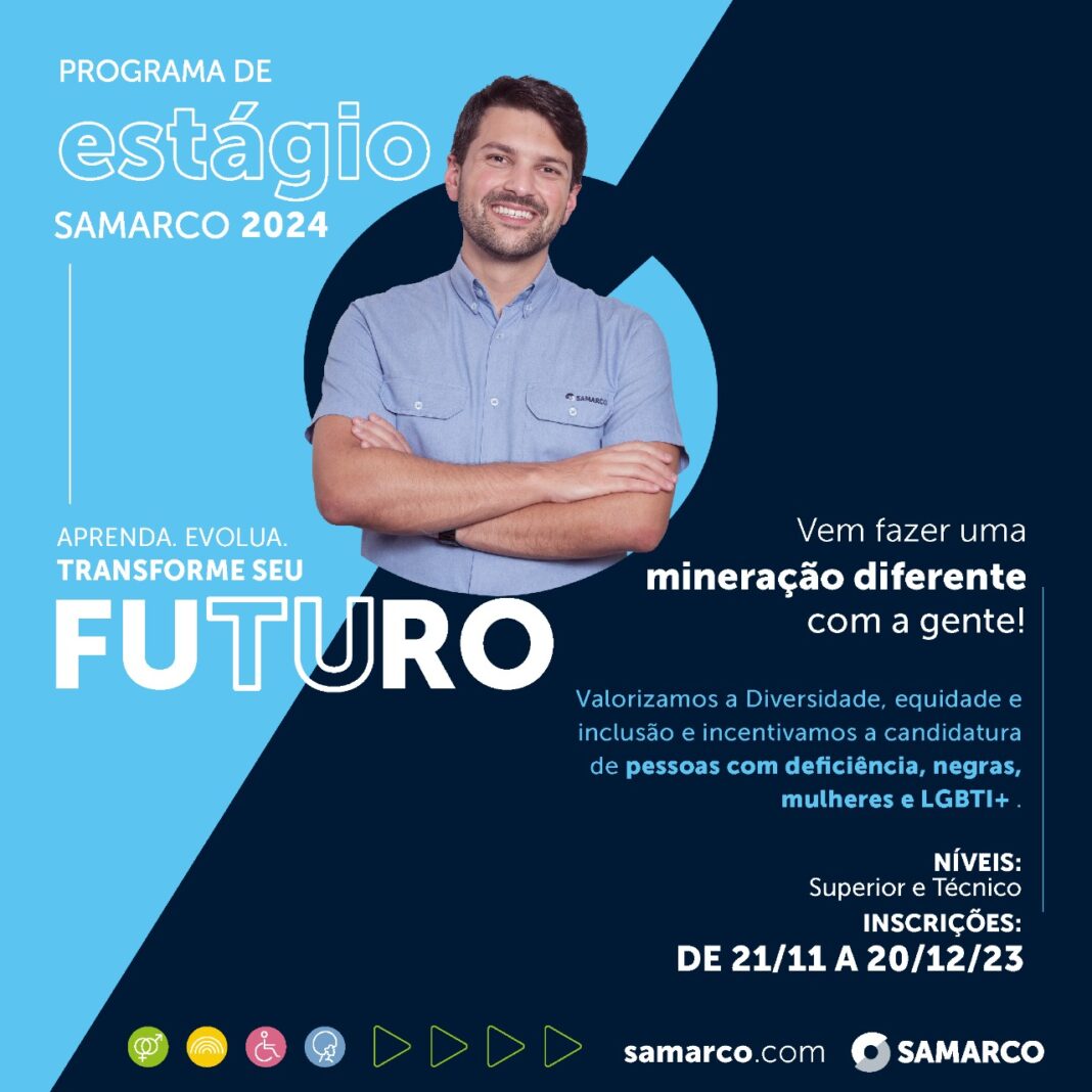 O prazo para concorrer a uma vaga no Programa de Estágio 2024 da Samarco está terminando. Os interessados (as) podem se inscrever até quarta-feira da próxima semana, dia 20/12. A empresa oferece 50 vagas para estudantes de nível superior e técnico, distribuídas entre suas unidades em Minas Gerais e no Espírito Santo, e as inscrições devem ser realizadas pelo site neste link: https://trabalheconosco.vagas.com.br/samarco/estagio-samarco.