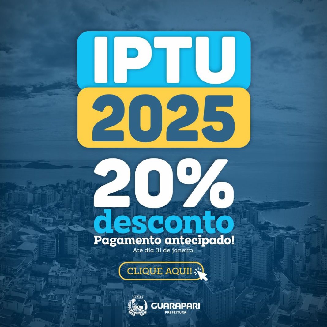 Em Guarapari, o Imposto Predial e Territorial Urbano, IPTU, já está disponível para pagamento. Quem pagar o IPTU até 31 de janeiro, recebe 20% de desconto. E quem pagar até o final de fevereiro, garante 10% de desconto.