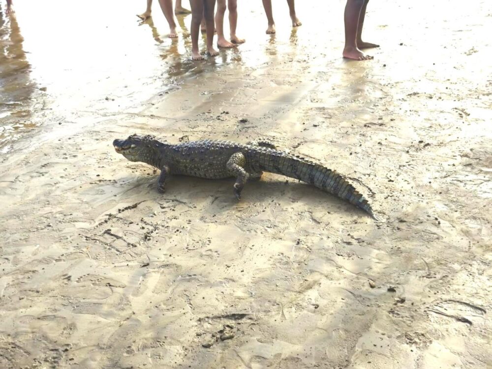 A suspeita dos moradores da região é que o réptil tenha sido trazido pelas águas do Rio Novo, que deságua próximo ao local.