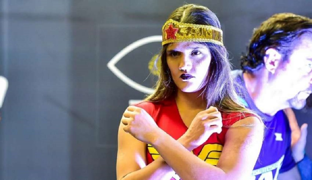 A lutadora de MMA Maria Ribeiro reagiu ao flagrar um homem que se masturbava no meio da rua, nesse domingo (26). O suspeito conduzia uma bicicleta, quando teria exposto a genitália. A atleta iniciou uma perseguição e, ao alcançá-lo, executou a imobilização.