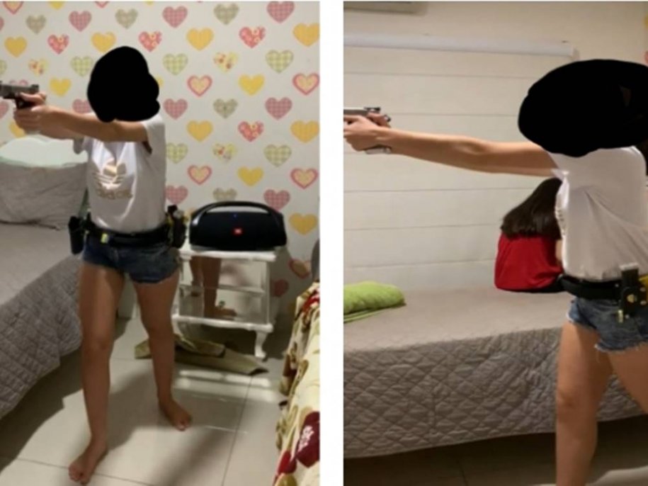 Vídeos gravados mostram a adolescente responsável pelo tiro que matou Isabele Guimarães Ramos praticando tiro em seu quarto, no condomínio Alphaville I, no bairro Jardim Itália, em Cuiabá. Esses vídeos estão anexados nos autos da investigação da morte de Isabele. No registro é possível ver a menina com o coldre na cintura, fone de proteção auricular e óculos.