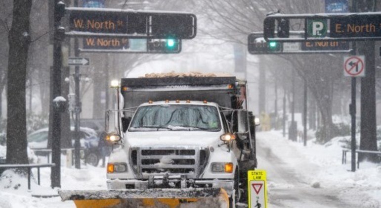 O governador da Geórgia, Brian Kemp, havia declarado estado de emergência na sexta-feira (14) e os limpa-neves estavam trabalhando desde antes do meio-dia para limpar as estradas.