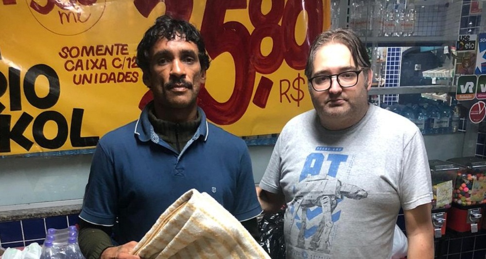 O homem contou que precisava apenas de um cobertor e queria doar o restante para os demais desabrigados