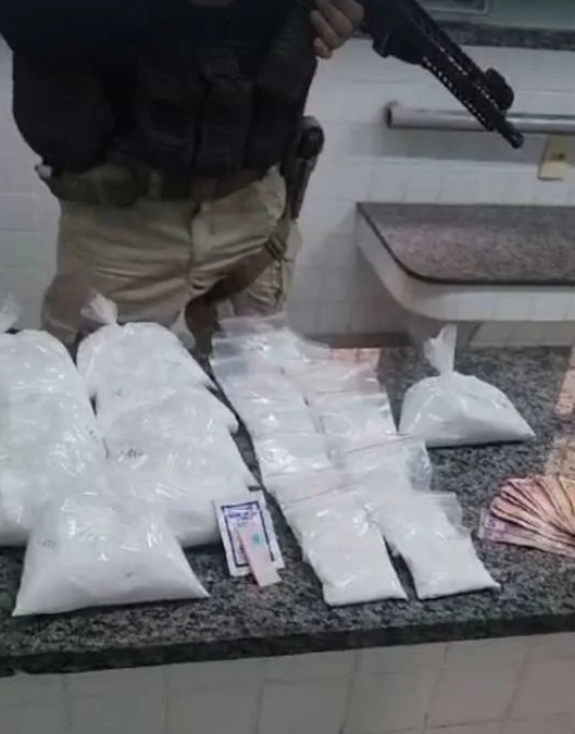 “Contudo, no interior do veículo, os agentes localizaram 25 sacolas plásticas de diferentes tamanhos contendo um pó branco, que o condutor alegava ser cafeína”, frisou a corporação.