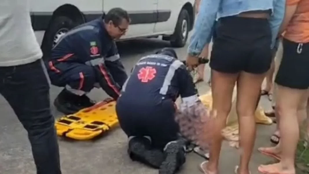A ciclista ficou caída na via e foi socorrida pelo Samu após ser atingida por um veículo em Piúma Crédito: Redes sociais