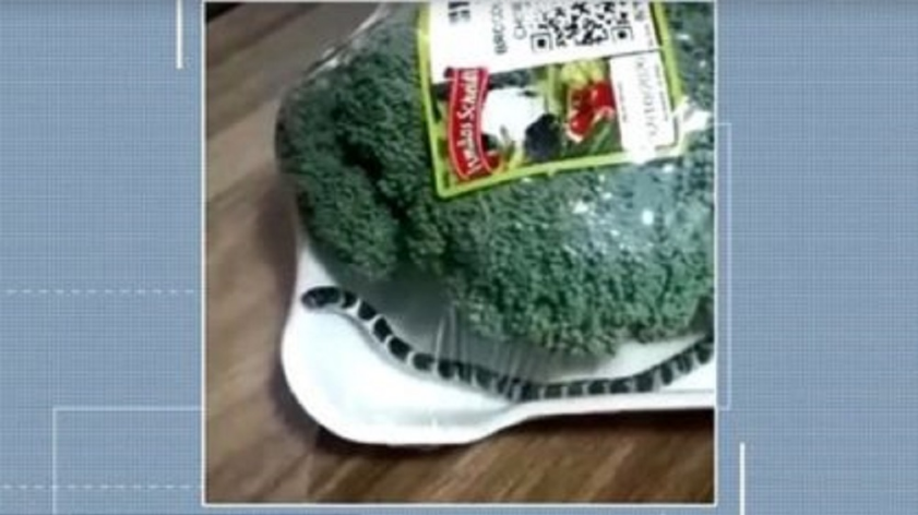 No último sábado (3), uma moradora de Brusque (SC) levou uma cobra pra casa após fazer compras em um supermercado. O animal estava dentro da embalagem de um brócolis.