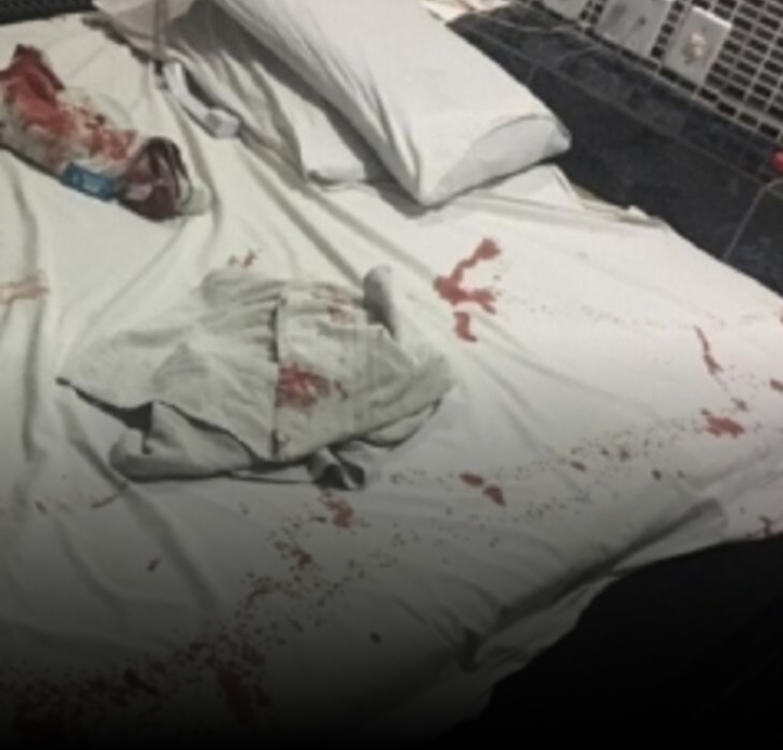 Ainda segundo o relato, a acompanhante relembra que o homem foi fechar a porta da garagem da suíte quando foi surpreendido pela esposa, que surgiu correndo. Ele tomou uma facada no abdômen e ficou caído no chão.