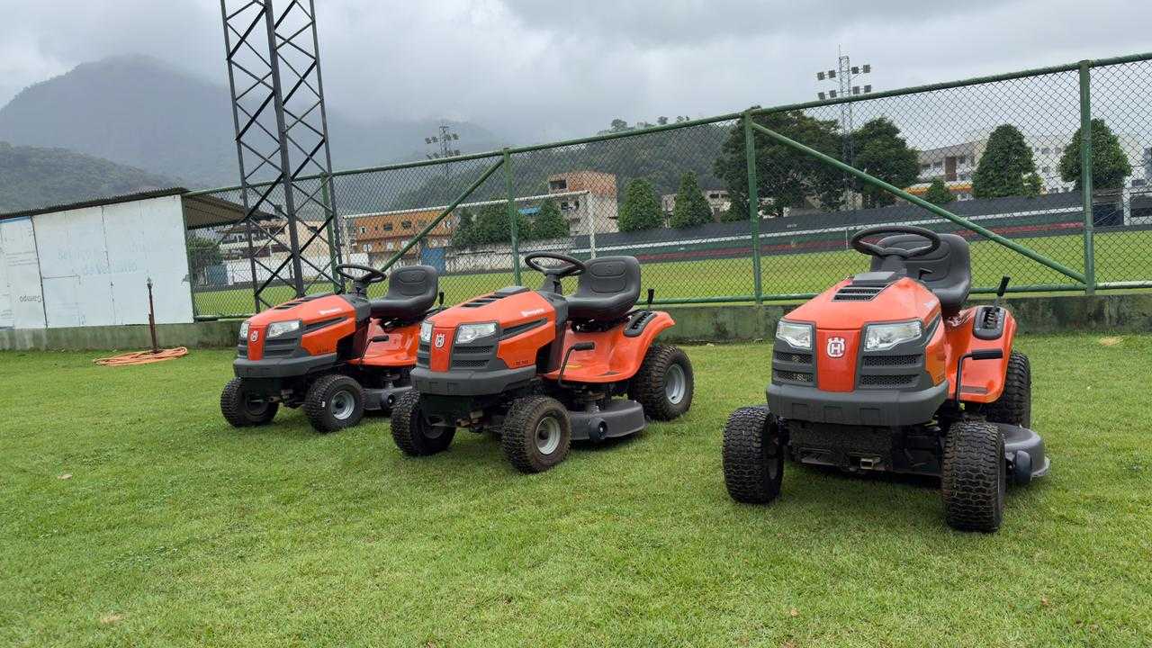 A Prefeitura de Alfredo Chaves acaba de receber três novos tratores cortadores de grama, que serão utilizados na manutenção dos gramados dos campos de futebol das comunidades do interior e do Estádio Municipal Carlos Soares Pinto.