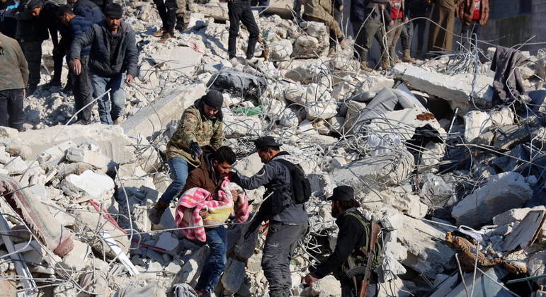 “O balanço deve aumentar consideravelmente na Síria porque centenas de pessoas continuam presas sob os escombros”, afirmaram os Capacetes Brancos (grupo de voluntários de proteção civil).