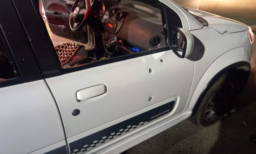 O carro da vítima ficou cheio de marcas de tiros e com os vidros quebrados