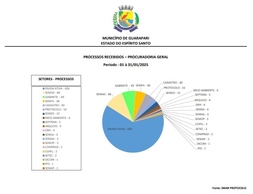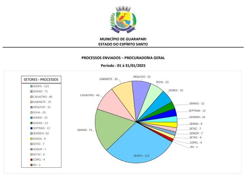 A Procuradoria Geral do Município de Guarapari divulgou, na última semana, o Relatório de Movimentação Processual referente ao mês de janeiro de 2025, destacando um índice significativo de resolução de processos logo no primeiro mês da nova gestão.
