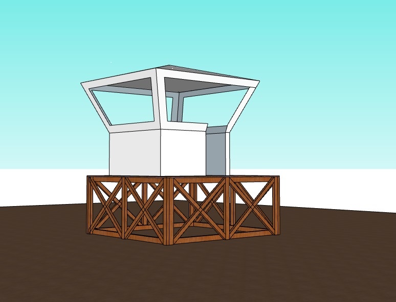 Esse modelo conceitual ficará por 30 dias em teste e avaliação da equipe de Salvamar de Vila Velha e usuários da praia. O protótipo é feito de fibra de vidro e madeira jaraju. O posto é espaçoso, a base tem 1,32 metros de altura. Já a cabine 2,20 metros de altura por 2 metros de largura.