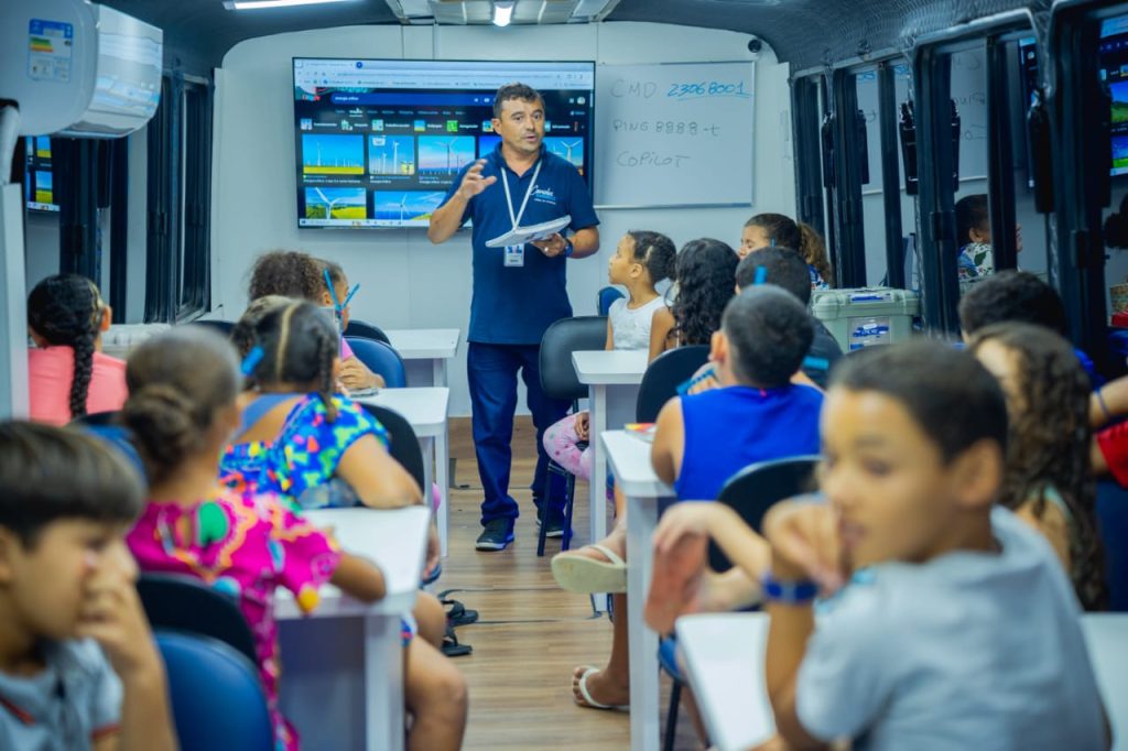 Resultado do diálogo da empresa com as comunidades, que levantaram seus anseios e necessidades, o projeto conta com um ônibus itinerante ambientado, com sala de aula e recursos multimídia, para proporcionar uma experiência interativa e imersiva para as pessoas.
