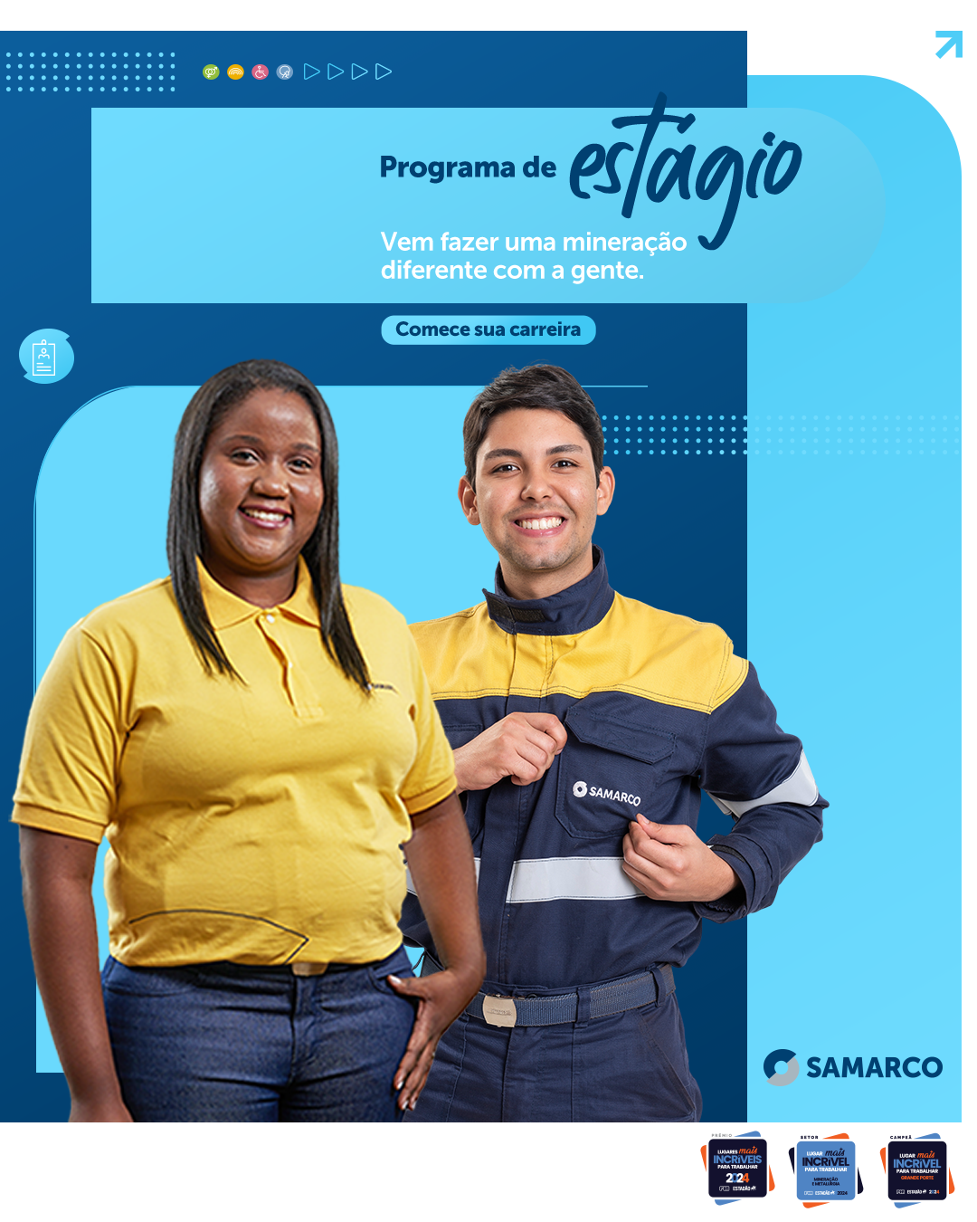 Segue até 15/06 o prazo para as inscrições no Programa de Estágio 2025 da Samarco. Estão sendo oferecidas vagas para as unidades de Ubu, no Espírito Santo, Germano, Mariana e Belo Horizonte, em Minas Gerais. As inscrições acontecem de forma online, pelo https://trabalheconosco.vagas.com.br/samarco/estagio-samarco.