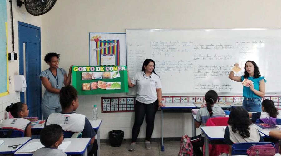 Alunos da escola José Elias de Queiroz aprenderam sobre os benefícios da alimentação saudável, durante palestra ministrada na manhã desta quarta-feira (14) pela equipe multiprofissional do Programa Saúde na Escola. Além de levar informações sobre cuidados com a saúde, a iniciativa busca também formar multiplicadores dos conteúdos trabalhados.