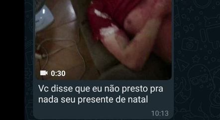 As imagens foram enviadas para a mãe do adolescente, com mensagens em tom de ameaça. Em uma delas, o agressor escreve: “Você disse que eu não presto para nada” e “Seu presente de Natal”.