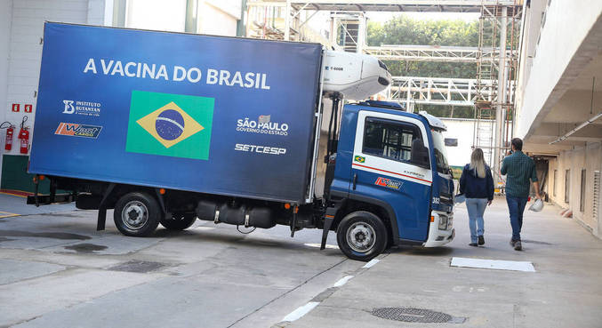Na sequência, o carregamento será transportado em caminhões refrigerados até a sede do Butantan, na capital paulista, onde as vacinas serão envasadas, embaladas e rotuladas para a distribuição ao SUS (Sistema Único de Saúde).