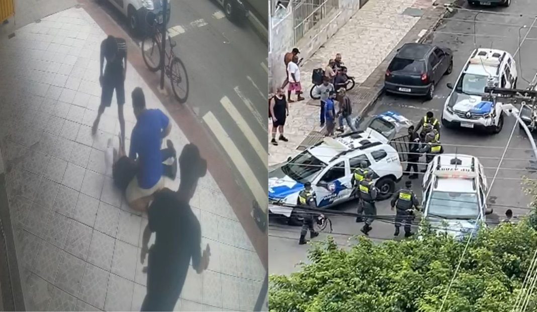 As agressões foram flagradas por uma câmera de segurança. Ao menos três pessoas aparecem no vídeo dando chutes e socos no homem, de 29 anos.