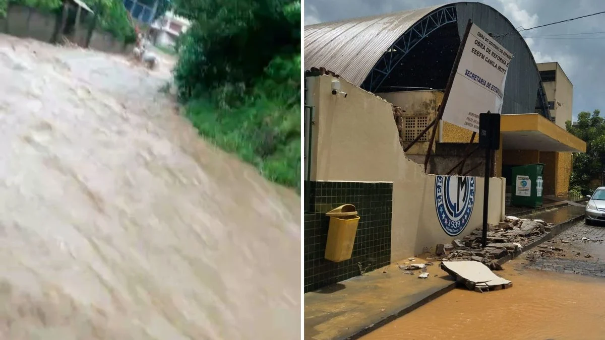 A chuva com fortes ventos, que atingiu diversas cidades capixabas na tarde desta segunda-feira (19), derrubou o muro de uma escola em Alfredo Chaves. Imagens que circulam em redes sociais, confirmadas pela Defesa Civil Municipal, mostram o impacto do temporal na Escola Estadual Camila Motta, no bairro Ouro Branco.